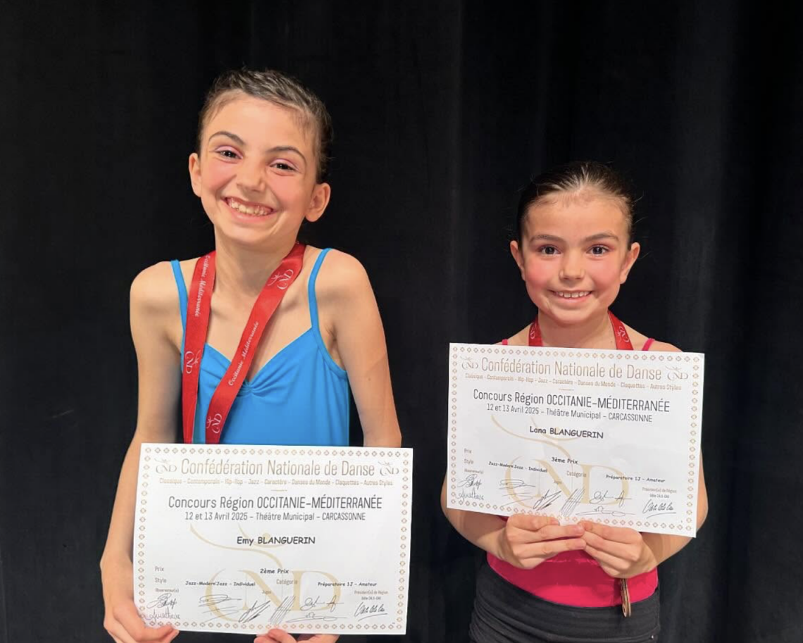 Encadrée par Céline Héron, professeur diplômée d’État en Danse Jazz, la section concours de Spirale Danse a su défendre avec talent les couleurs de l’école. Les nombreuses heures de répétitions ont porté leurs fruits, avec un beau palmarès :
